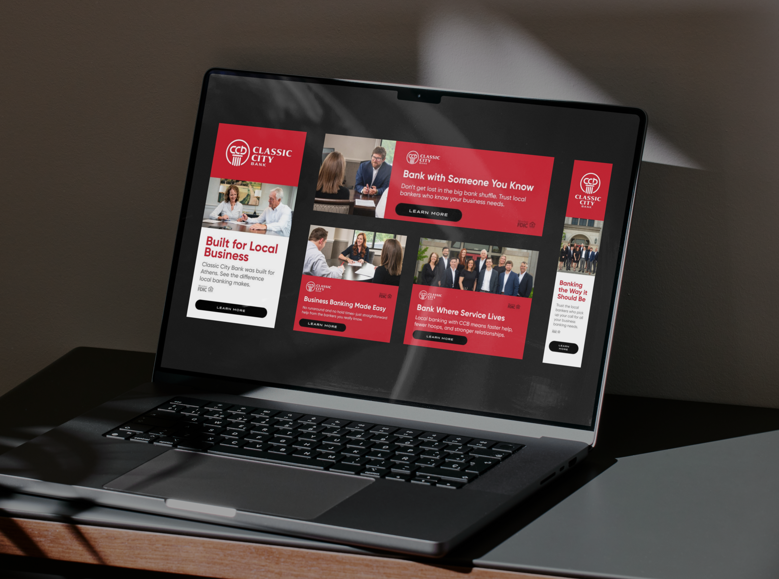 Kaptiv8 developed a campaign concept centered on the message “Banking the Way it Should Be.” The creative positioned Classic City Bank as the local alternative to large, impersonal financial institutions and more specifically – “Built for Local Business”. Ad design emphasized: